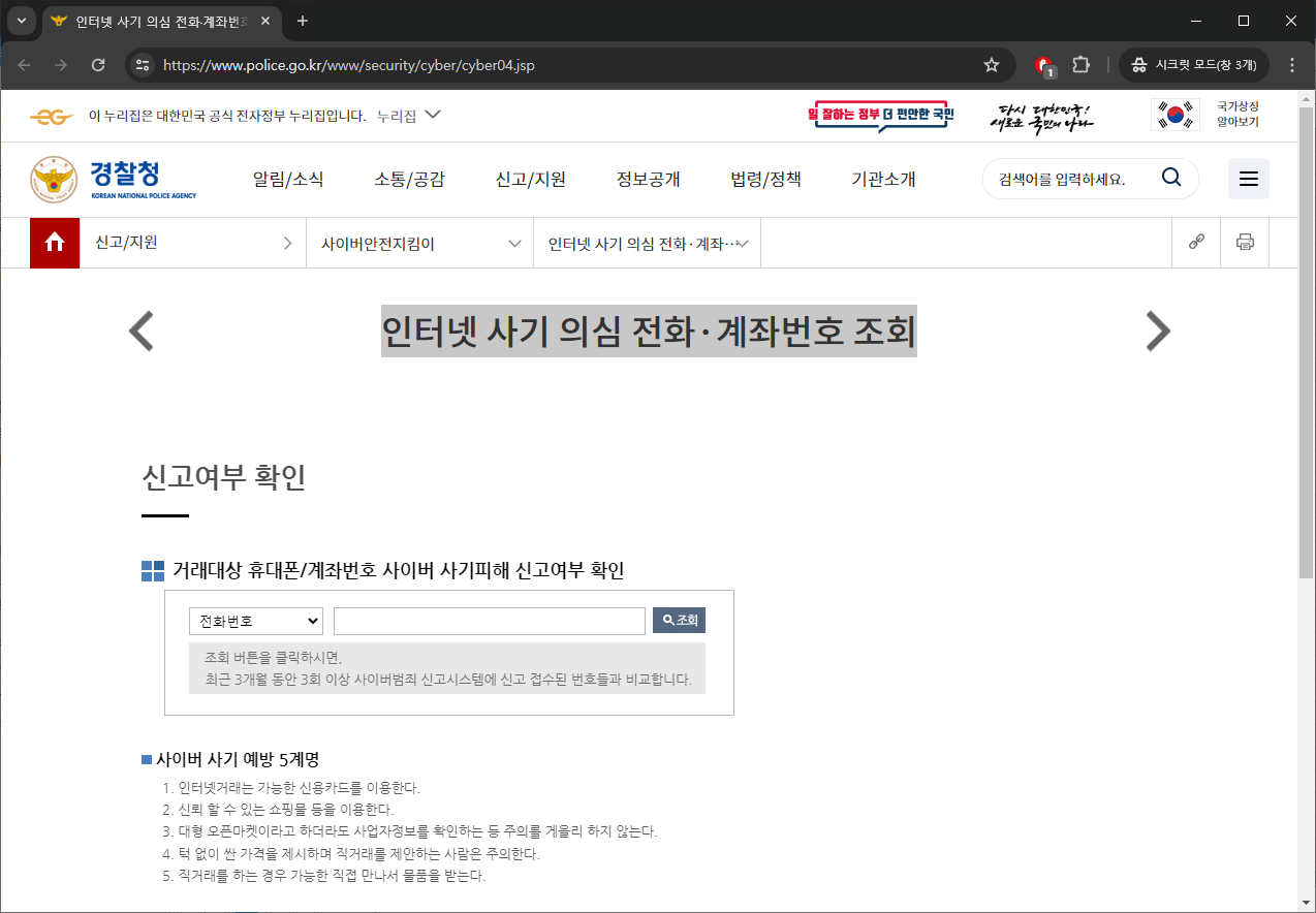 | 인터넷 사기 의심 전화·계좌번호 알아보기 (0) | 2024.05.02 |