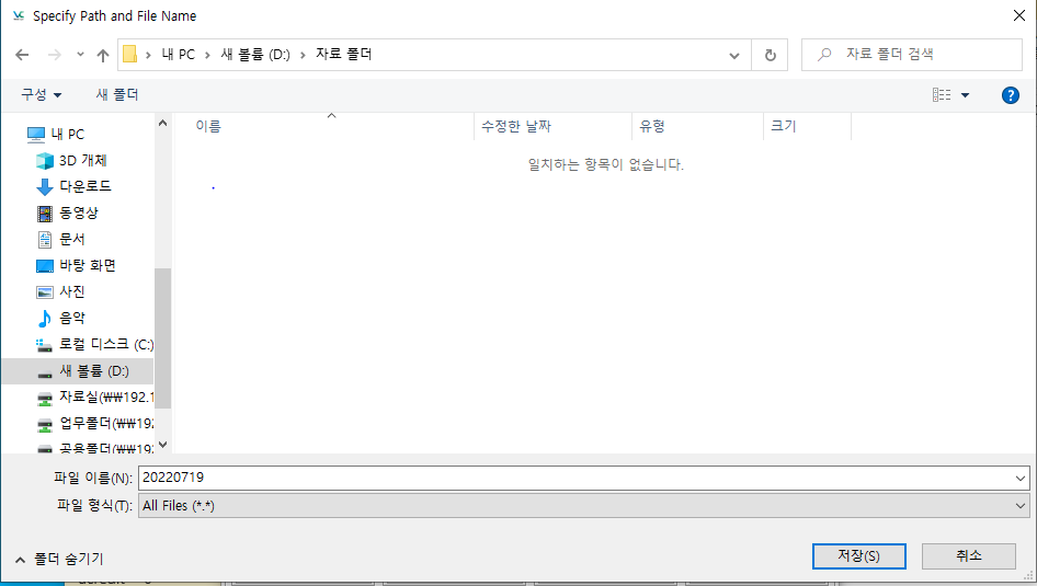위의 화면에서 용량이 큰 드라이브를 선택하여 "자료 폴더" 등의 이름으로 폴더를 만들고 파일이름은 날짜 "20220719" 로 하였습니다.