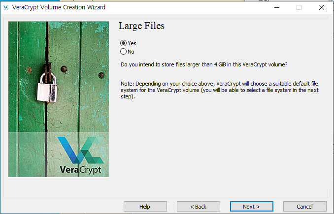 위의 화면은 4G 이상의 큰 파일에 대한 설정 입니다. "yes or no"를 선택 후 "Next" 를 클릭 합니다.