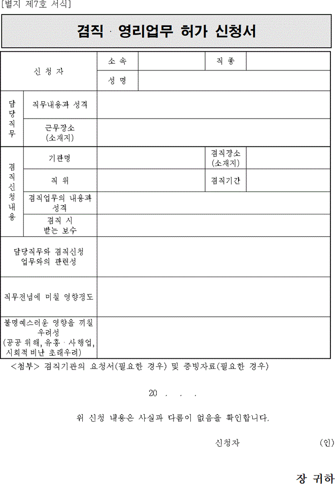겸직·영리업무 허가 신청서