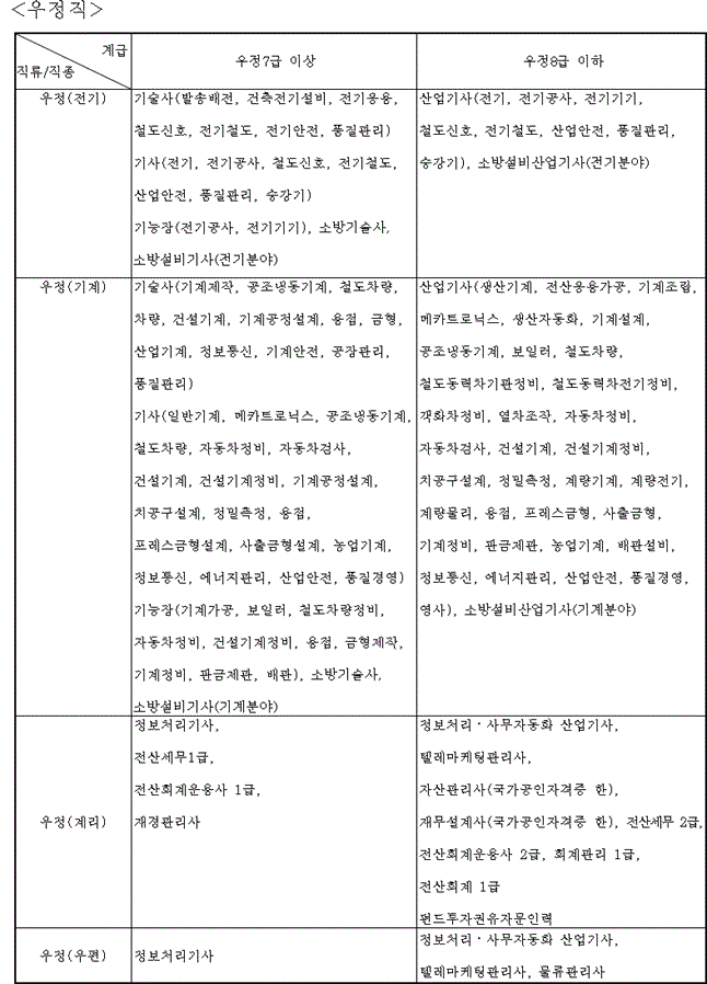 | [우정사업본부] 우정직공무원의 경력경쟁채용등을 위한 자격증 구분표 (0) | 2022.12.06 |