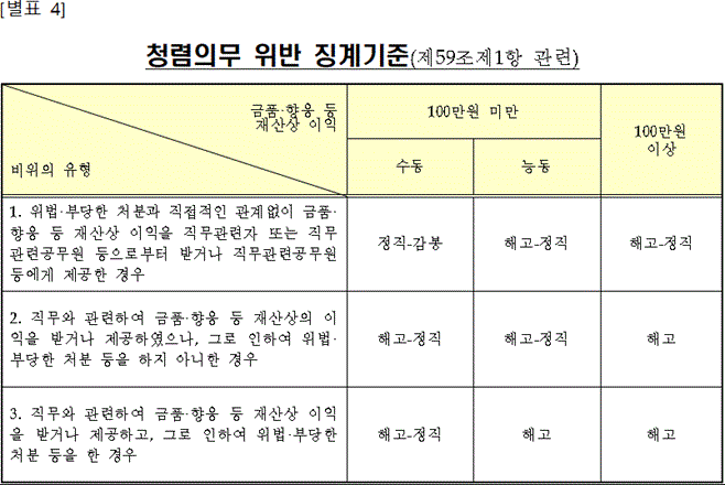 청렴의무 위반 징계기준