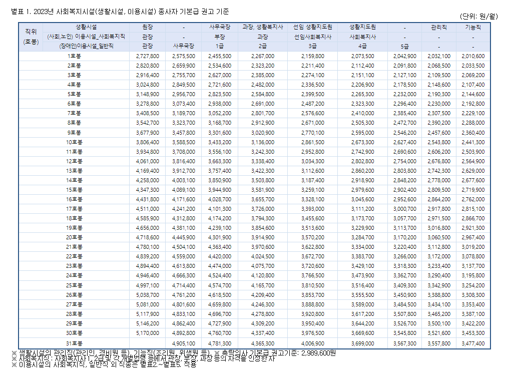 | [2023] 사회복지이용시설 종사자 기본급(사무직) (0) | 2023.02.06 |