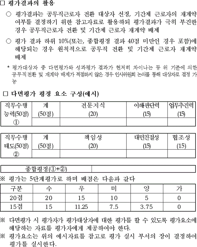 | [공무직] 비정규직근로자 채용 사전심사 기준(제18조제4항 관련) (0) | 2022.12.03 |