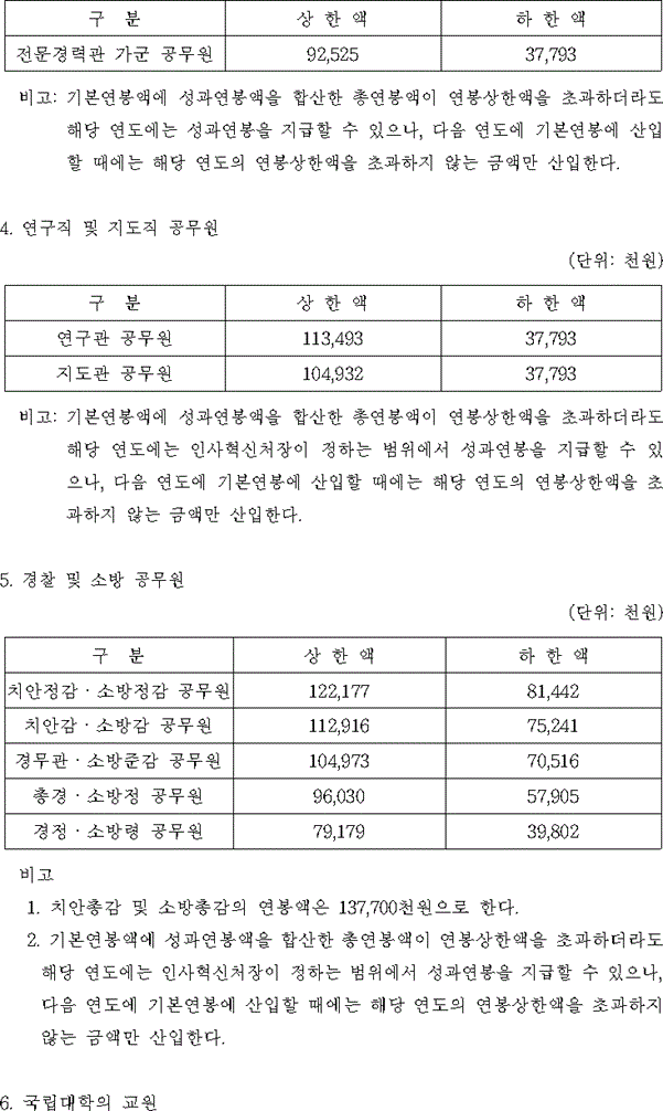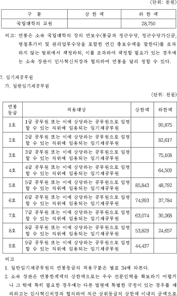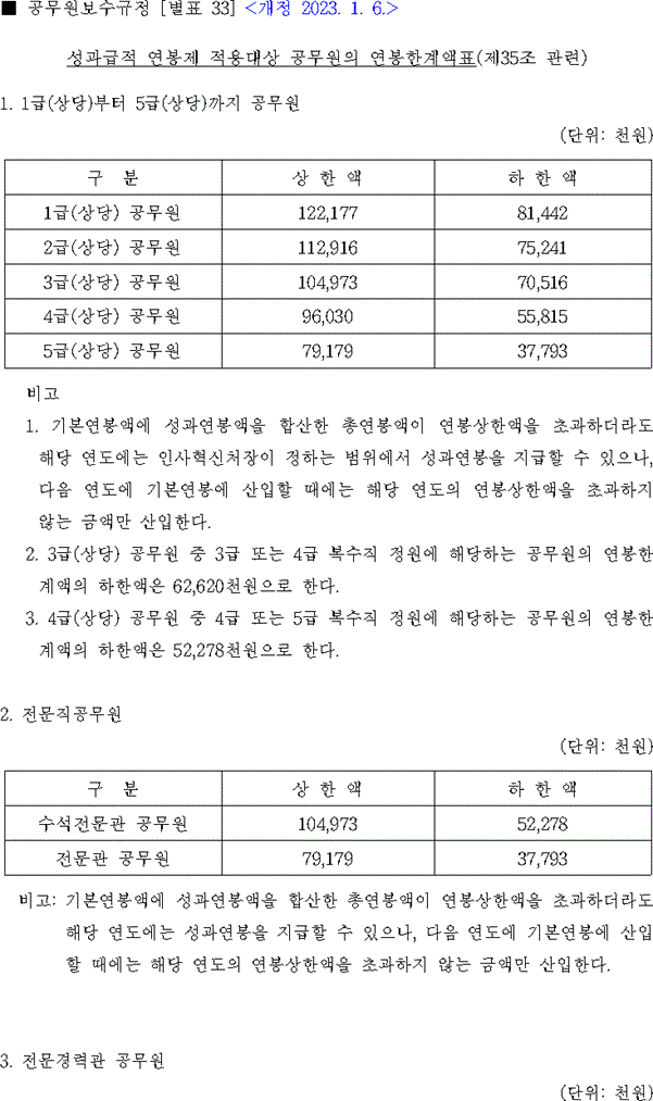 | [2023년][공무원 봉급표] 성과급적 연봉제 적용대상 공무원의 연봉한계액표 (0) | 2023.01.13 |