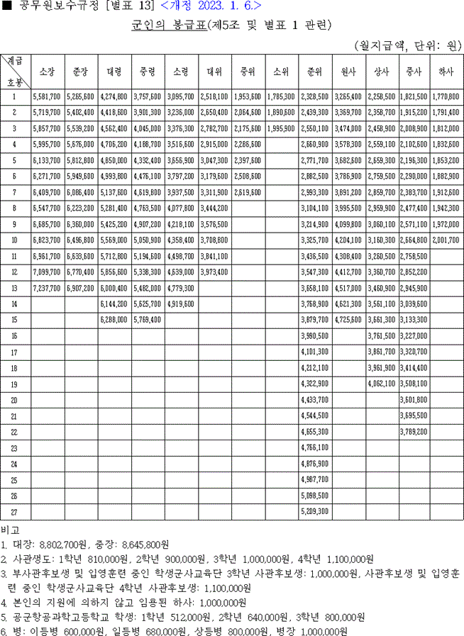 | [2023년][공무원 봉급표] 고정급적 연봉제 적용대상 공무원의 연봉표 (0) | 2023.01.13 |