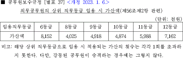 [2023년][공무원 봉급표] 외무공무원의 상위 직무등급 임용 시 가산액