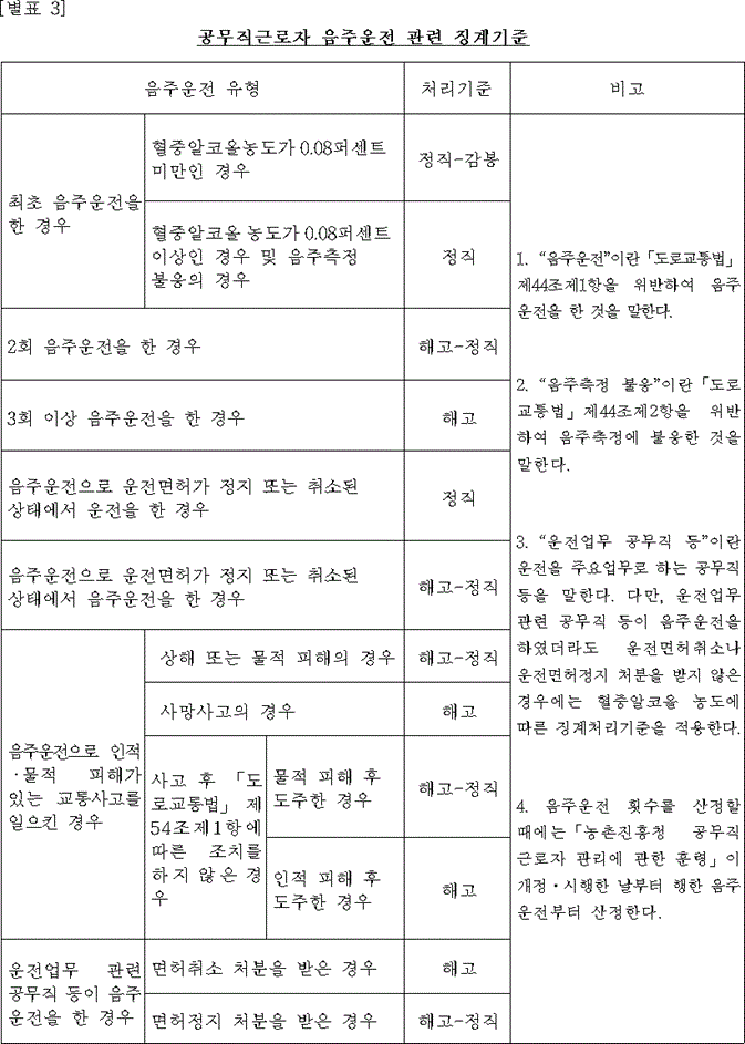 | [공무직] 공무직근로자 음주운전 관련 징계기준 (0) | 2022.12.05 |