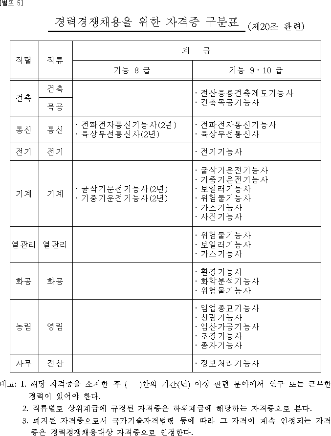 | [산림청] 경력경쟁채용을 위한 자격증 구분표 (0) | 2022.12.06 |