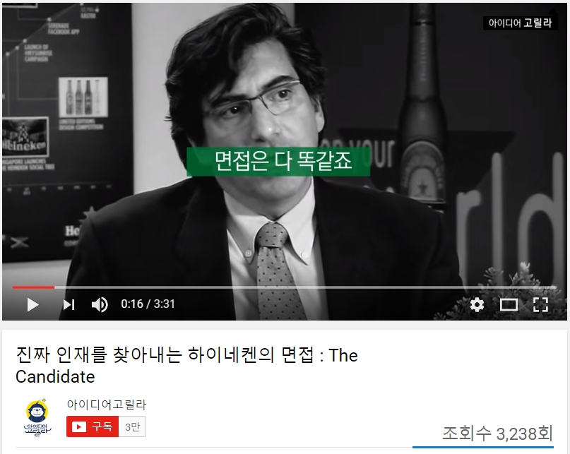 [YouTube|아이디어고릴라|창업] 진짜 인재를 찾아내는 하이네켄의 면접 : The Candidate (0) | 2021.04.27 |