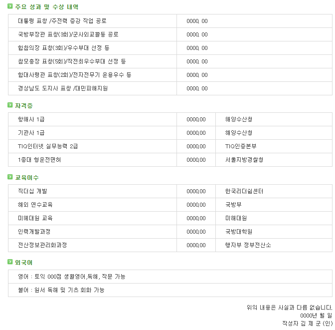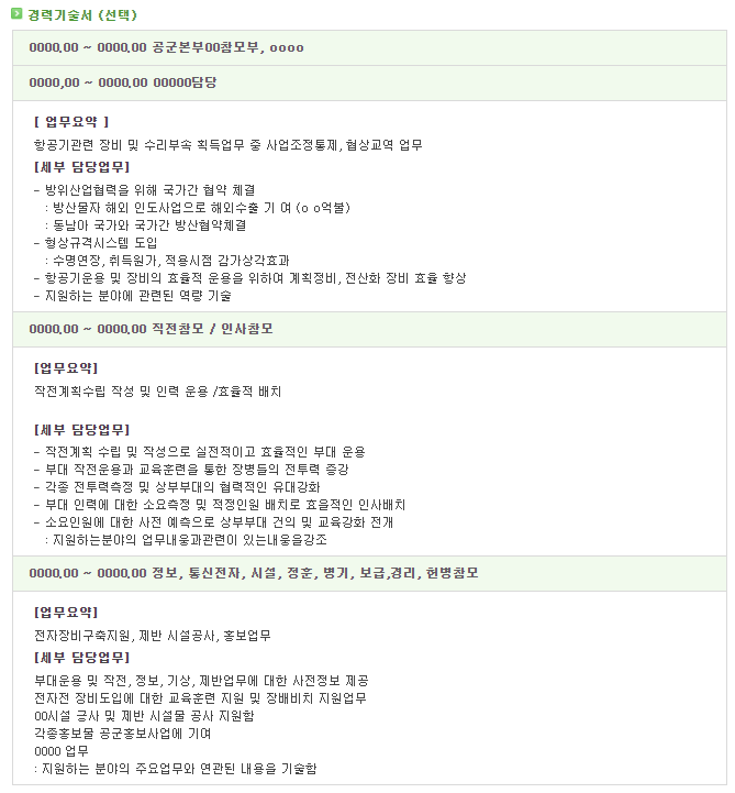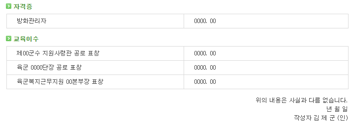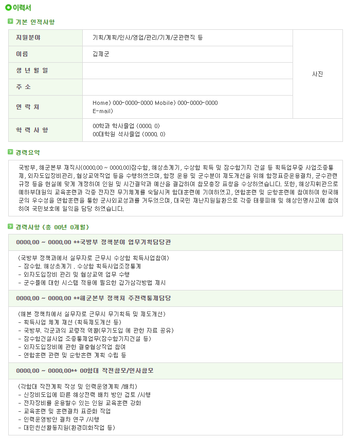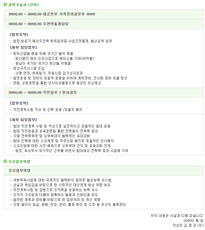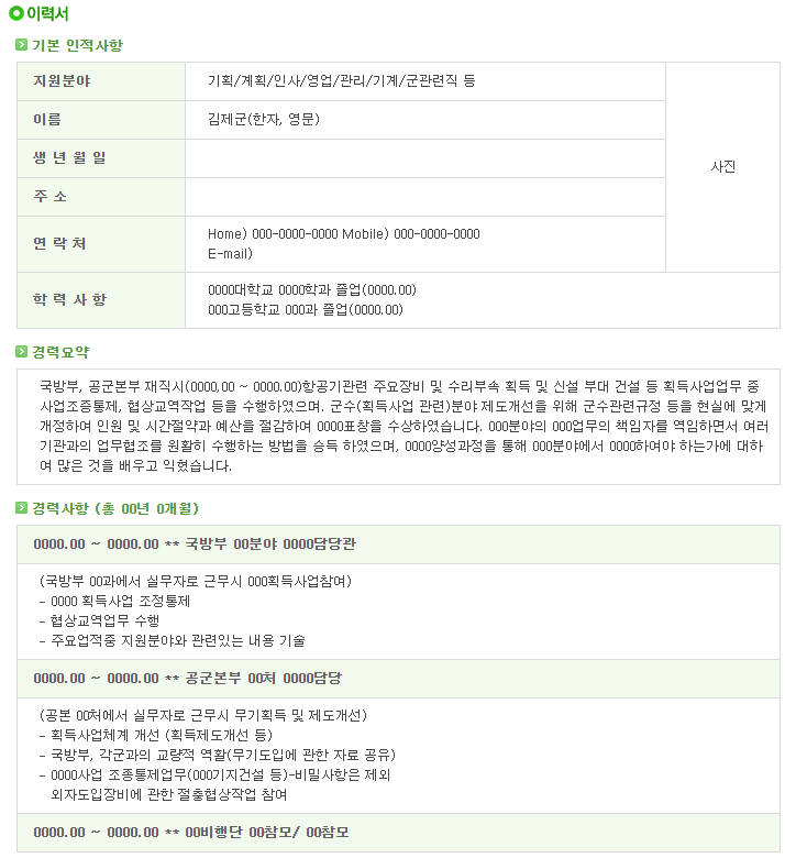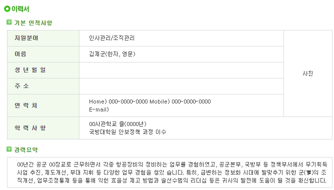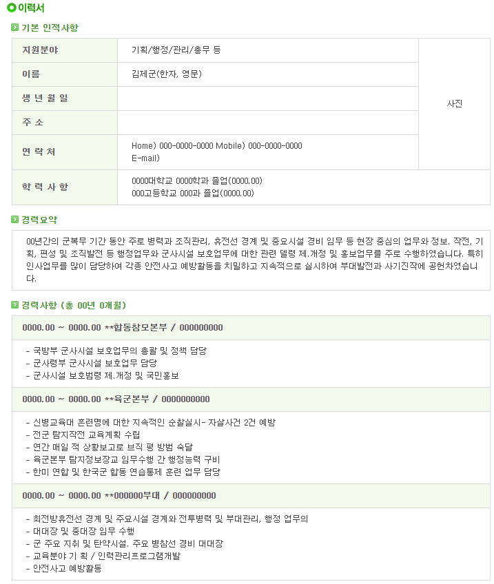 #제대군인지원센터 #이력서 #샘플 #이력서샘플 #이력서양식 #육군원사