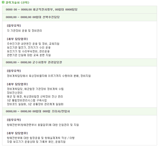 [제대군인지원센터] 육군 기술병과 원사 이력서 샘플