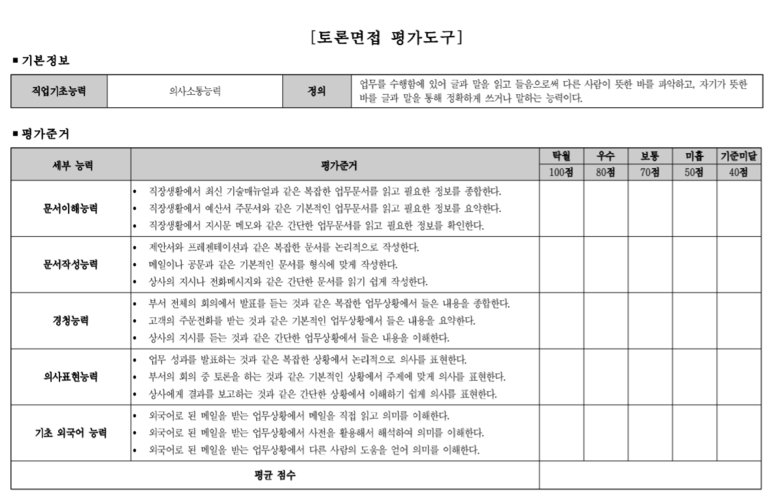 | [NCS] 채용모델 면접문항(토론면접_직업기초능력 자료집) (0) | 2021.04.28 |