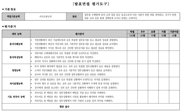 | [NCS] 채용모델 면접문항(발표면접_직업기초능력 자료집) (0) | 2021.04.28 |