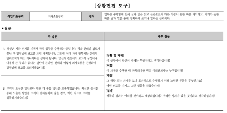 | [NCS] 채용모델 면접문항(상황면접_직업기초능력 자료집) (0) | 2021.04.28 |