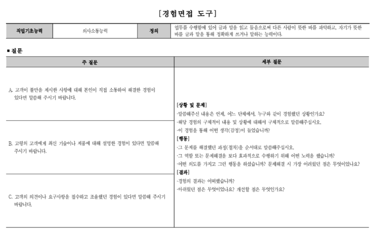 #ncs #채용 #ncs채용 #면접문항 #면접 #경험면접 #직업기초능력 #자료집 #취업준비생 #교육자료