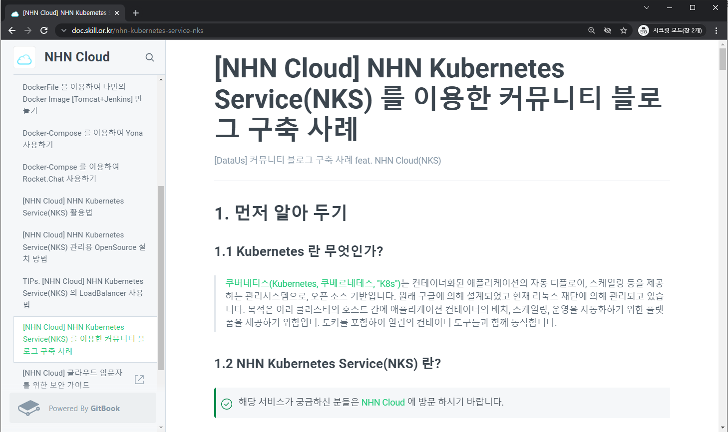 NHN Cloud 의 NHN Kubernetes Service(NKS) 를 이용하여 커뮤니티 블로그 구축 사례를 적어 보았습니다.