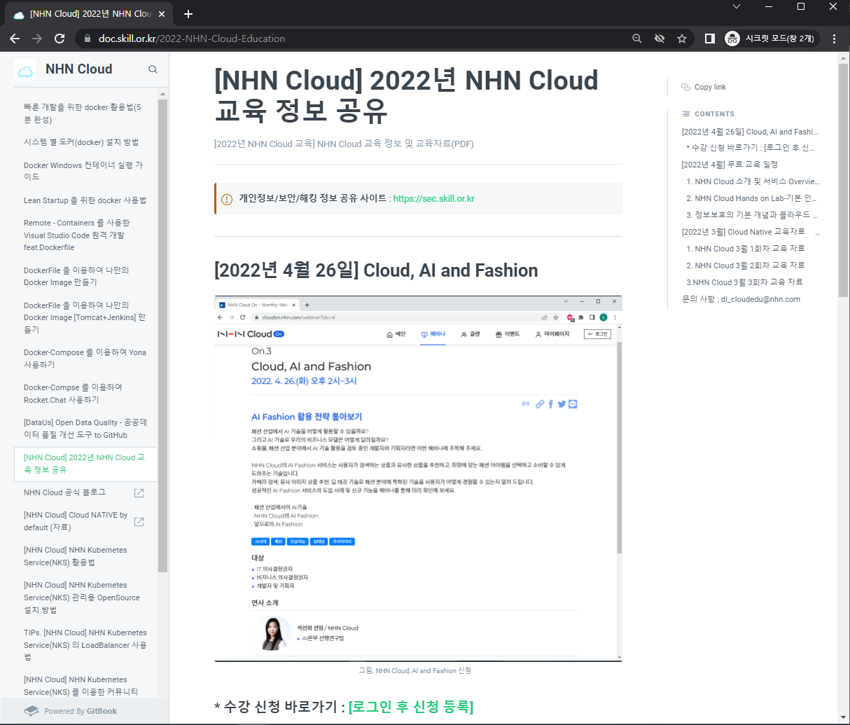 NHN Cloud 에서 새롭게 홈페이지를 개편하면서 온/오프라인 교육 정보도 올렸습니다.
