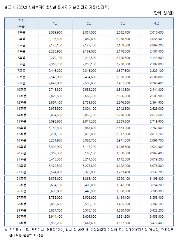 | [2023] 사회복지이용시설 종사자 기본급(관리직) (0) | 2023.02.06 |