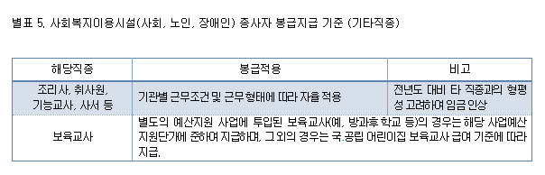[2023] 사회복지이용시설(사회, 노인, 장애인) 종사자 봉급지급 기준(기타직종)