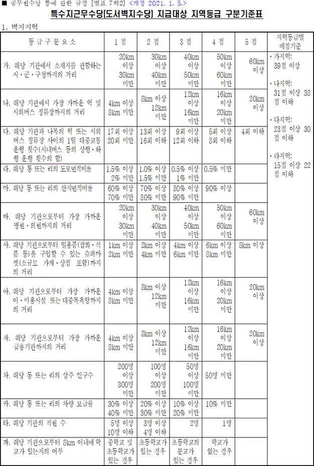 | [공무원수당] 특수지근무수당(도서벽지수당) 지급대상 지역등급 구분기준표 (0) | 2022.12.08 |