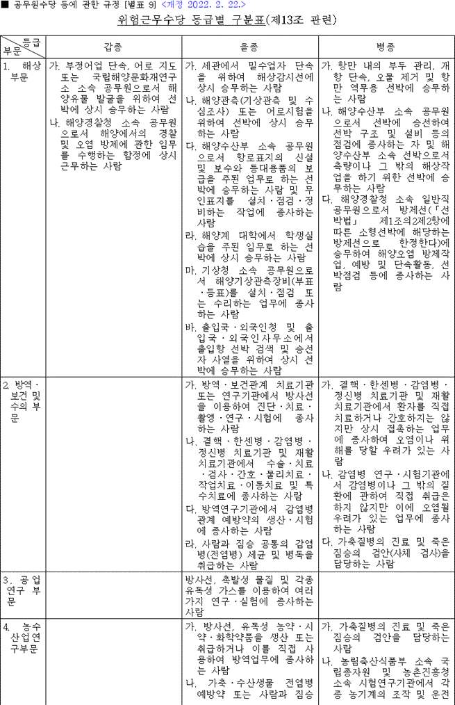 | [공무원수당] 위험근무수당 지급 구분표 (0) | 2022.12.08 |