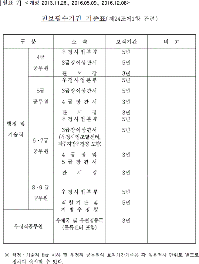 | [우정사업본부] 전보필수기간 기준표 (0) | 2022.12.09 |