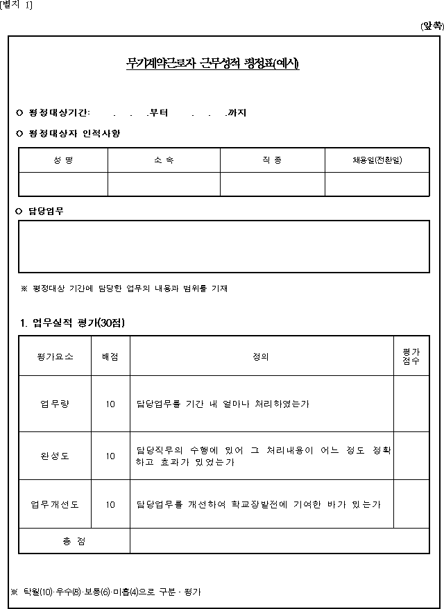 무기계약근로자 근무성적 평정표