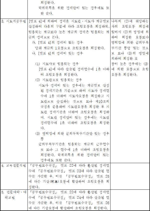 공무원의 초임호봉표(제8조와 관련)