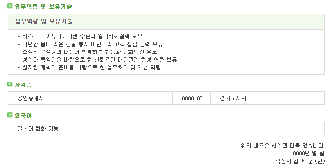 [제대군인지원센터] 이력서 샘플(영업관리)