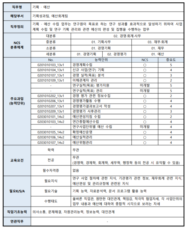#ncs #채용 #ncs채용 #직업기초능력 #자료집 #직무기술서 #직무명세서 #기획 #예산